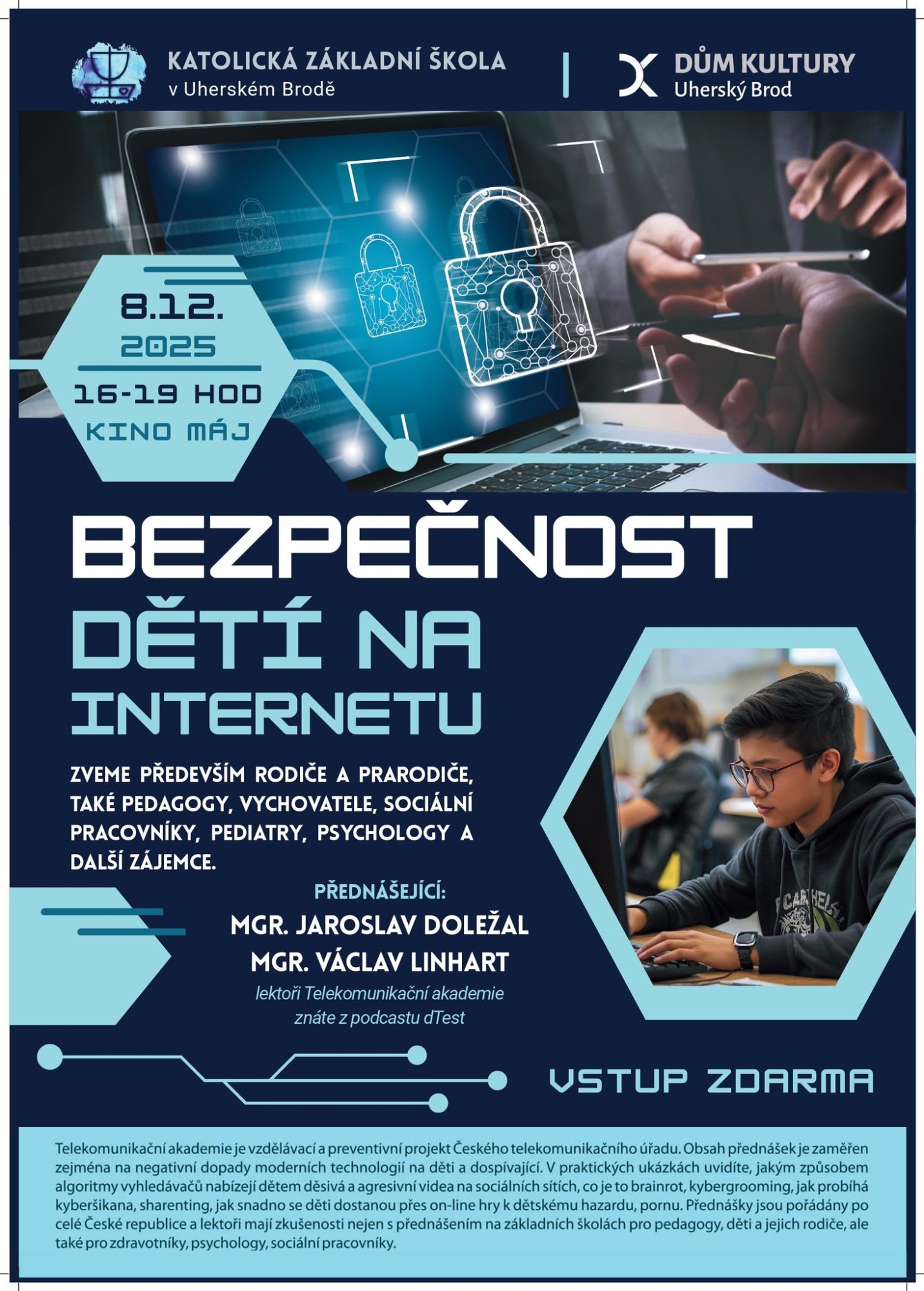 Přednáška určená rodičům, prarodičům, pedagogům, vychovatelům, sociálním pracovníkům a dalším zájemcům.