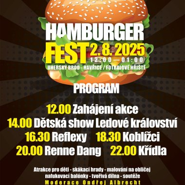 Tento rok se můžete opět těšit na nálož těch nejlepších burgerů, mnoha druhů – včetně vegetariánských i bezlepkových variant, plus hot dogy, tortily, sušené maso, skvělou zmrzku, víno, pivo, drinky, limonády a spoustu dalšího jídla a pití.