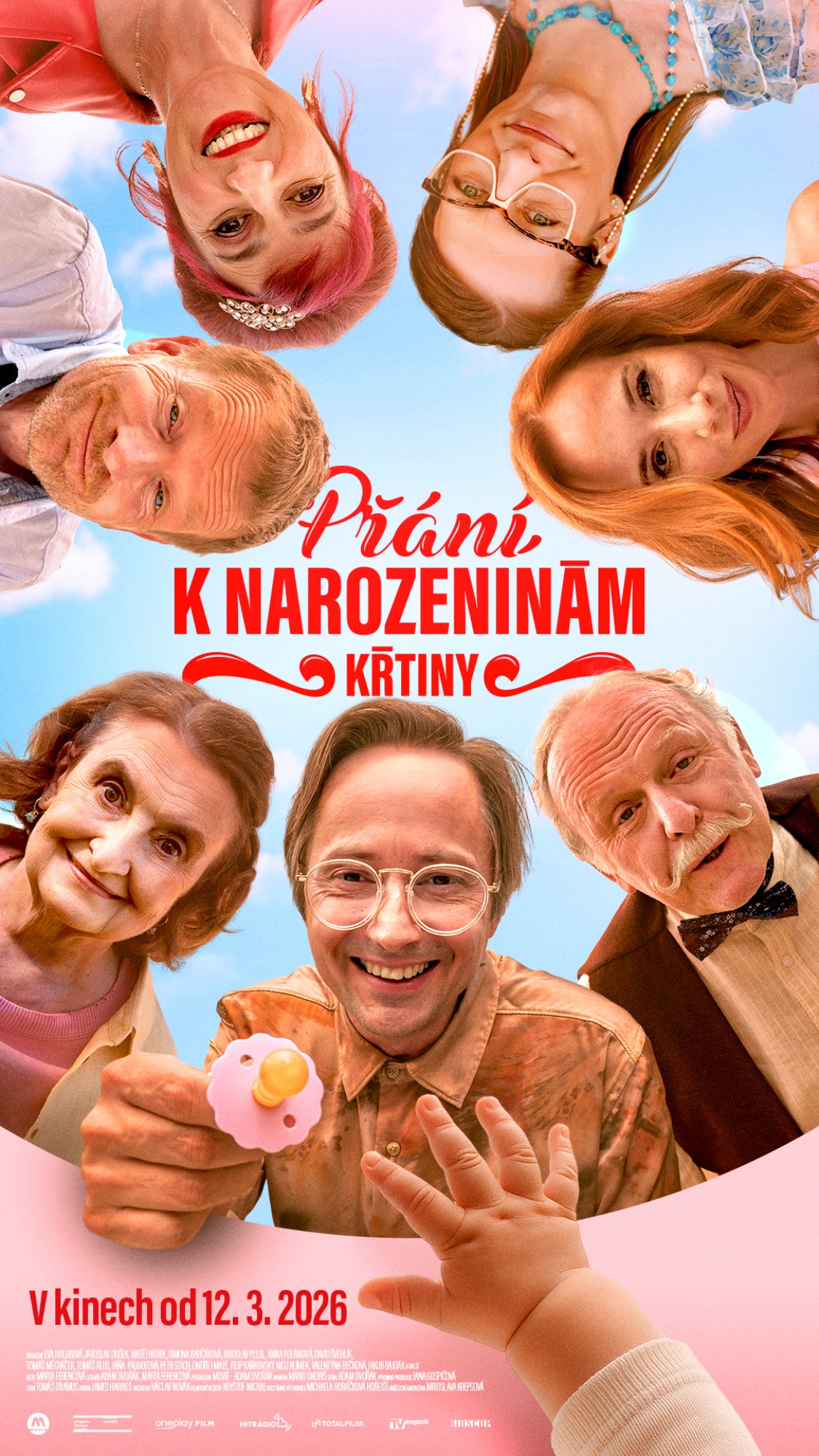 Na rodinném statku Líby a Arnošta vyvrcholí přípravy na křtiny jejich vnučky. Líba má jasno – všechno musí proběhnout přesně tak, jak si vysnila a naplánovala. Seznam hostů, výzdoba i slavnostní atmosféra jsou pečlivě pod kontrolou. Jenže jak to v téhle rodině chodí, realita bývá úplně jiná. Simona si potají prosadí jiné jméno pro svou holčičku, Arnošt se zabere do vlastního "detektivního" pátrání po ztracených klíčích a Karel s Richardem mezitím zvládnou způsobit pořádný rozruch ve zlatnictví. A aby toho nebylo málo, objeví se Vlastička – prodavačka se ztrátou paměti , jejíž přítomnost spustí další lavinu nečekaných groteskních situací. Slavnostní den se nezadržitelně blíží, na povrch začínají vyplouvat staré tajemství, nevyřčené křivdy i drobné rodinné lži. Z poklidných příprav se stává série improvizací, nedorozumění a emotivních střetů, v nichž se ukazuje, že udržet rodinu pohromadě je stejně náročné jako uspořádat dokonalé křtiny...