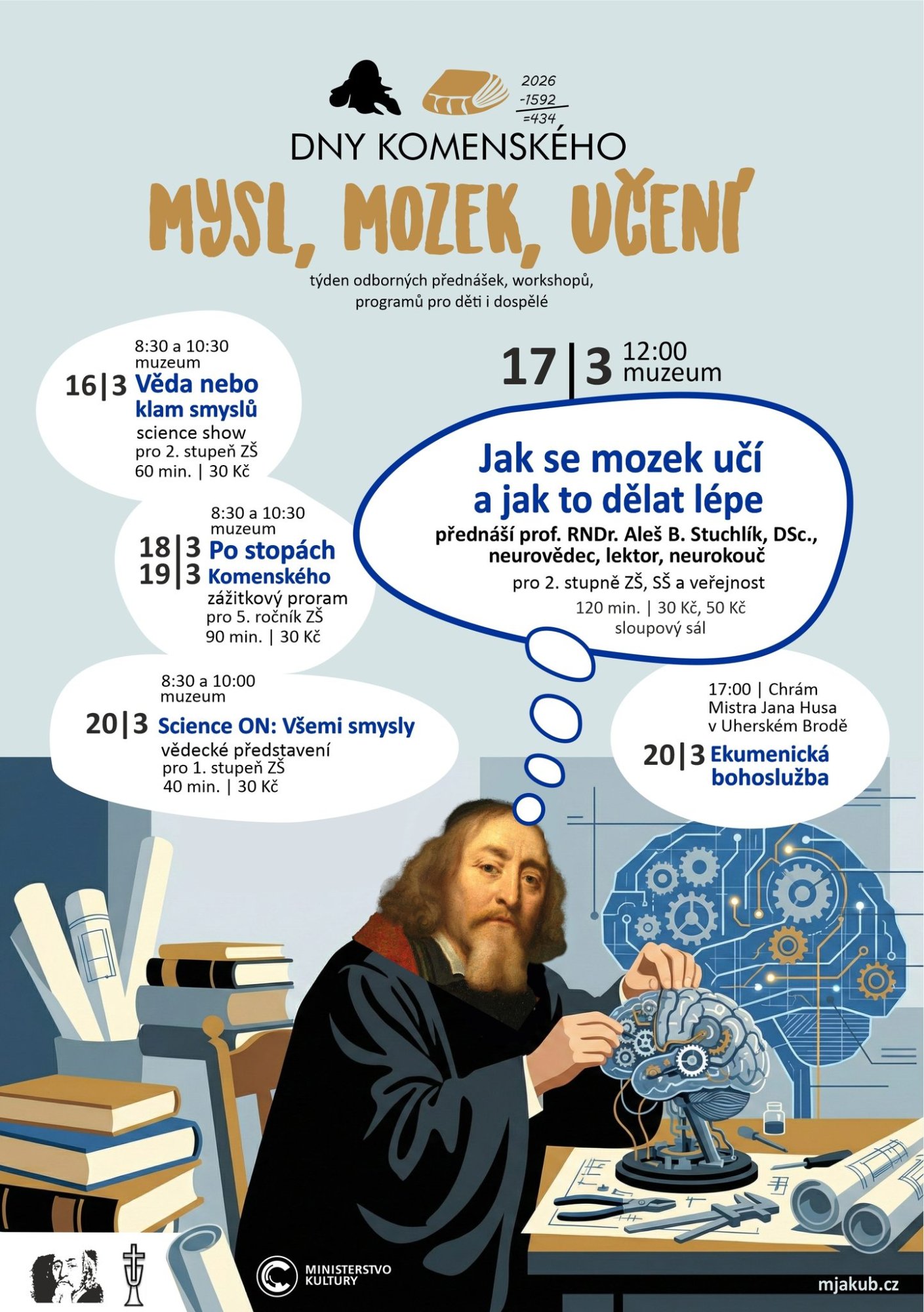 V rámci akce bude vystaven původní tisk Opera didactica omnia, doplněný o dobové reprodukce anatomie mozku a texty o Komenského představách o jeho fungování.