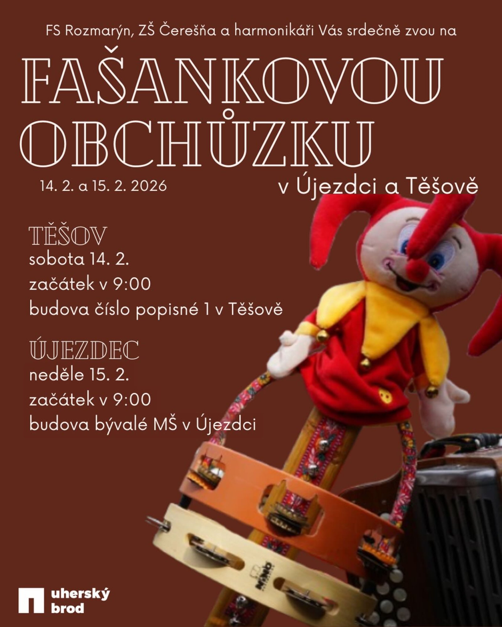 FS Rozmarýn, Ženský sbor Čerešňa a harmonikáři Vás srdečně zvou na dvoudenní putování ve fašankovém průvodu.