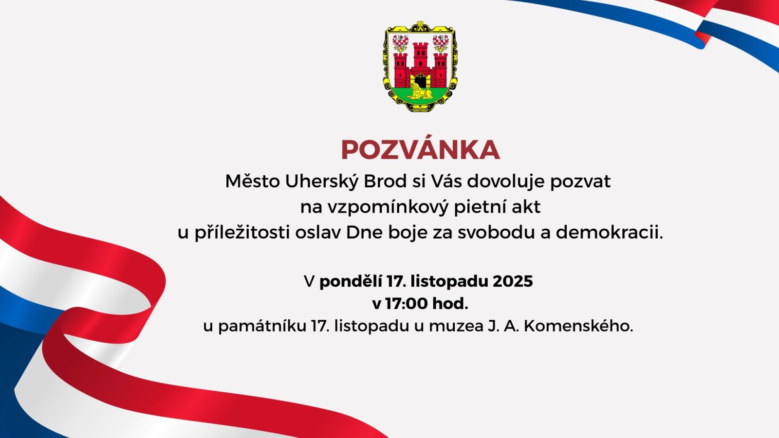 Události 17. listopadu a Den boje za svobodu a demokracii si připomeneme v pondělí 17. listopadu v 17 hodin u památníku před muzeem.